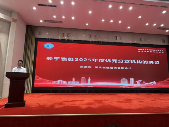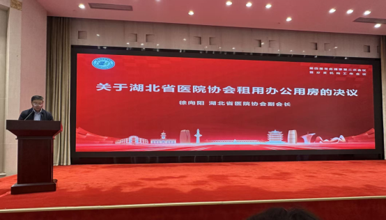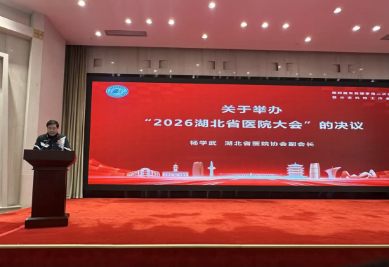 会议第四项,协会副会长郑正春、朱海东、杨学武、徐向阳分别宣读四项决议,明确相关事项落地执行:一是正式修订《湖北省医院协会“三重一大”事项民主议事决策制度》,制定《湖北省医院协会公益活动管理办法》和《湖北省医院协会发文办理程序的规定》;二是确定“2026湖北省医院大会”定于11月13-14日在武汉东湖国际会议中心举办;三是确定湖北省医院协会“2025年度优秀分支机构”名单,并在2026湖北省医院大会上进行表彰;四是会议同意协会租用武汉市东湖路165号省卫健委招待所5楼、6楼共8间房间作为协会办公用房。