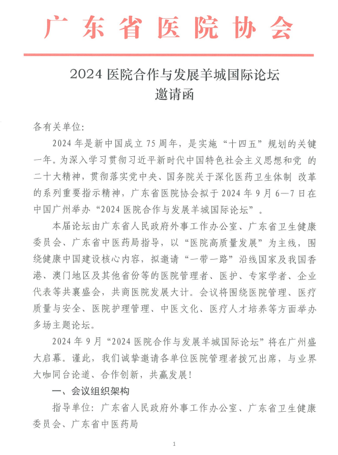 转:2024医院合作与发展羊城国际论坛邀请函(第一轮)