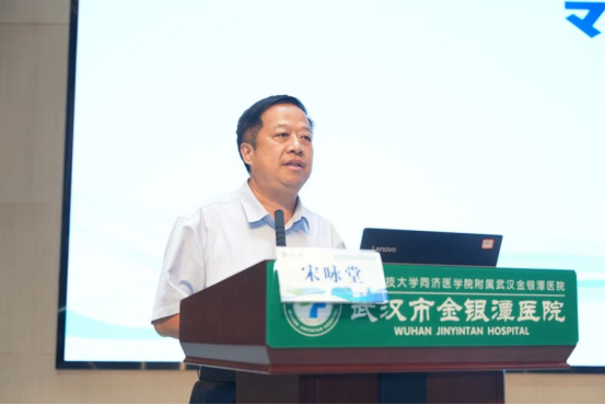 武汉市金银潭医院党委书记黄朝林首先致欢迎词。作为湖北省医院协会传染病管理专委会、湖北省医学会结核病学分会主任委员,他回顾过去一年工作成果,明确来年 “防、诊、治、管、研” 五维升级目标,为后续工作锚定方向。