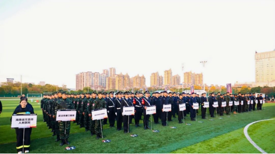 为进一步加强交流,检验各医院安保队伍的消防技能、军事素养和应急反应能力,激发广大安保工作者“练本领、强素质、保安全”的积极性,切实推动安保队伍从“经验型”向“专业型”、“实战型”转变,安保专委会组织了首届消防、军事技能大比武。本次比武设置了消防技能(灭火器灭火、单人单盘水带连接出水、双人双盘水带连接出水、单人双盘水带连接不出水)、军事技能(队列动作、第二套擒敌拳、警棍盾牌操、应急棍)两个大类8个比赛项目,来自全省18家医院的安保队伍报名参加,海南省文昌市人民医院女子保安队作为特邀单位参加了比武。
